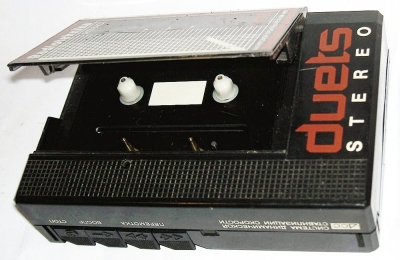 Кассетный магнитофон-проигрыватель ''Дуэт ПМ-8401'' предназначен для индивидуального прослушивания стереофонических фонограмм записанных на кассетах МК-60 на головные телефоны. В комплект входят: кассетный проигрыватель, стереотелефоны, контейнер для батарей типа А-343 или А-373. Управление: клавиши воспроизведения, перемотки в обе стороны, переключатель типа ленты; при окончании или обрыве ленты отключение питания автоматическое. Диапазон воспроизводимых частот 40...14000 Гц (Fe2O3); коэффициент искажений 1%; питание от батарей АА или А-343, А-373 через контейнер; габариты аппарата 140х95х35 мм. Вес 500 гр. Наименование модели ''Дуэт'' подразумевает прослушивание фонограмм на две пары телефонов.