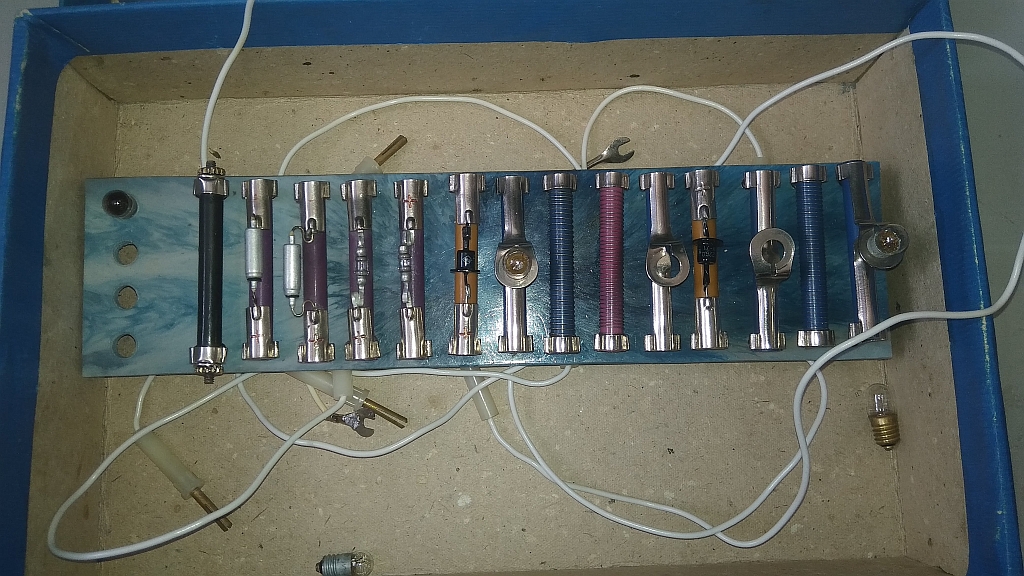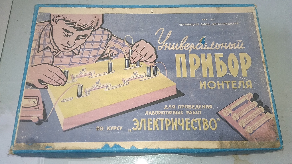 Универсальный прибор для проведения лабораторных работ по курсу “Электричество» изготовлен Черновицким заводом металлоизделий, предположительно с 1971 года.