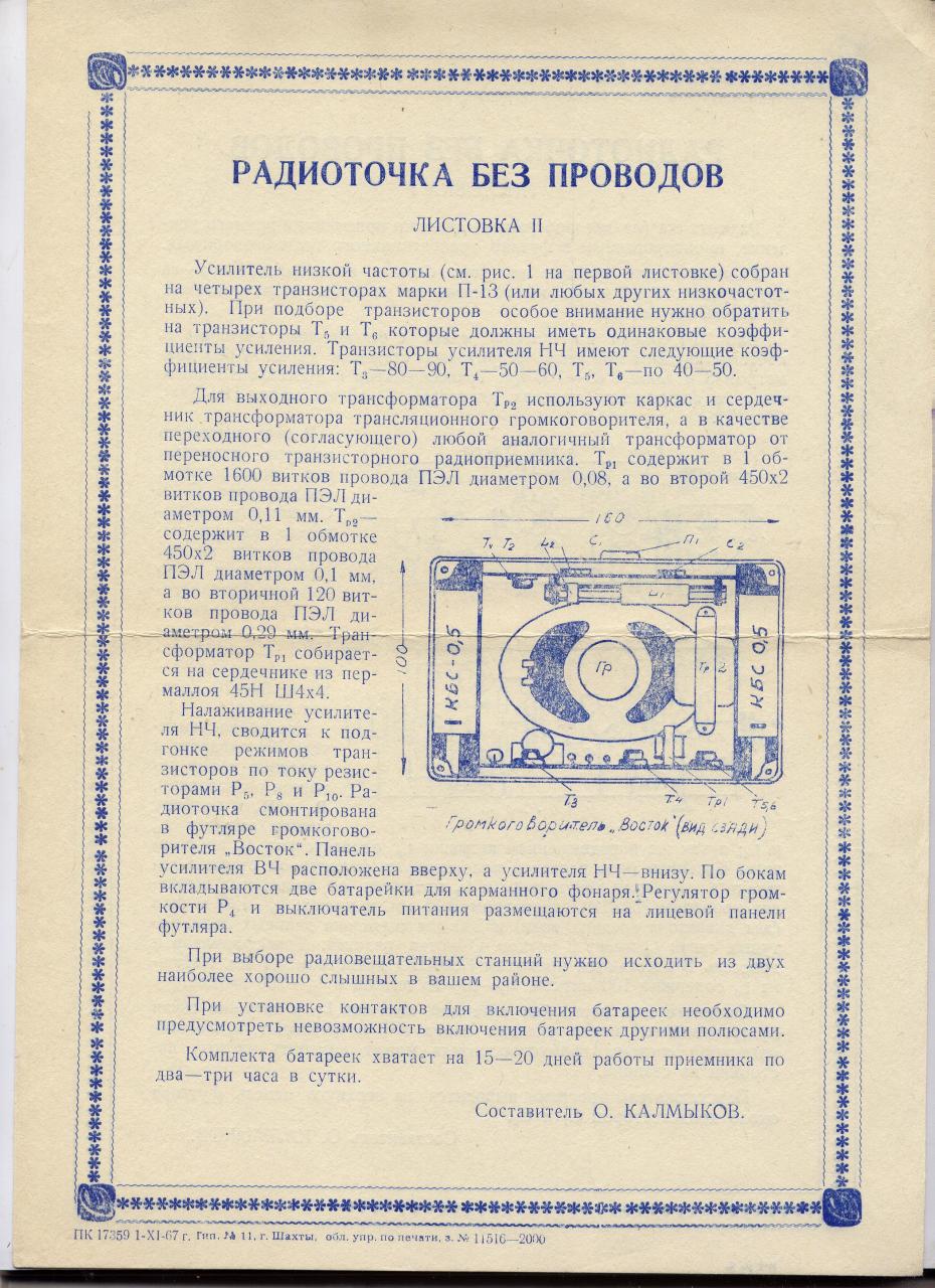 Примерная программа кружка радиолюбителей в пионерском лагере.