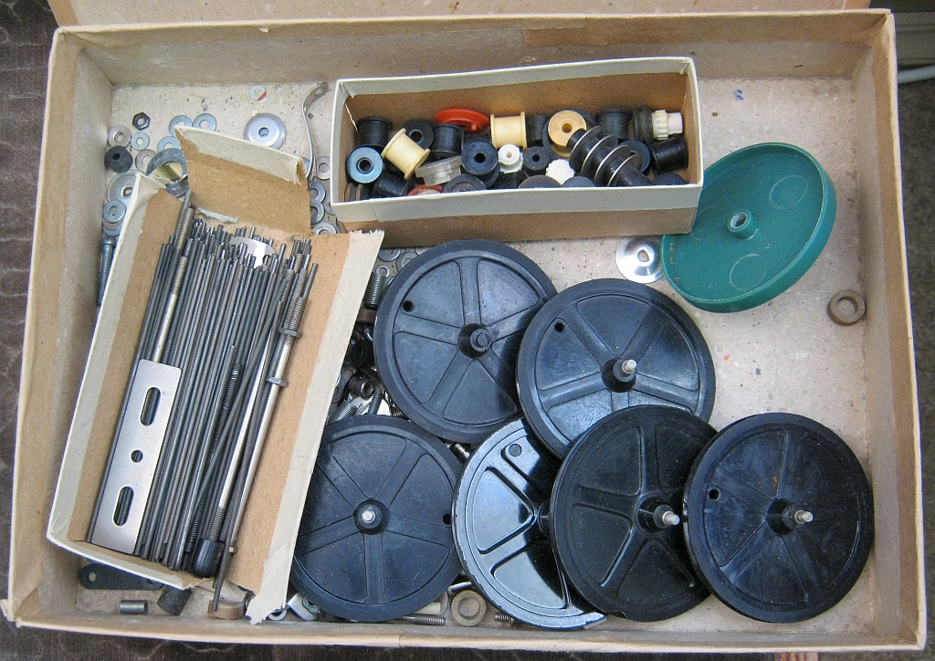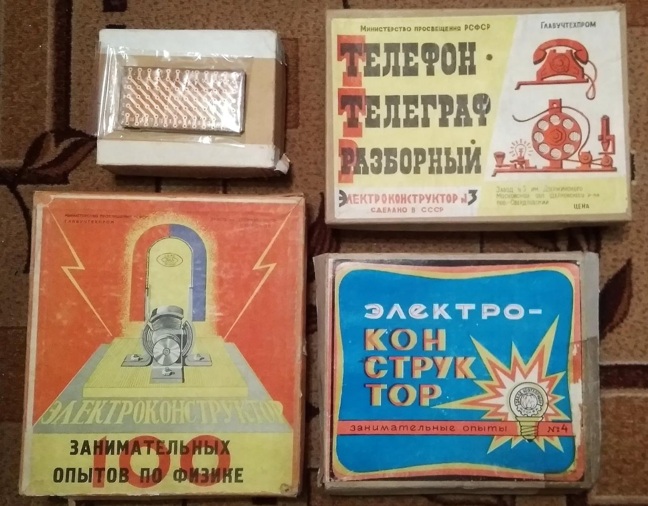 Есть несколько электроконструкторов, еще советских, разных лет. Точнее то, немногое, что от них осталось: коробки, отдельные детали...