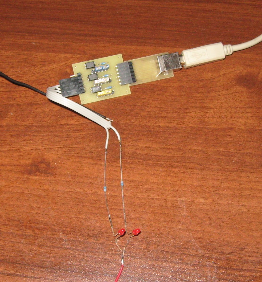 Для примера я просто подвесил два светодиода на выходы оптопар (RTS и DTR).