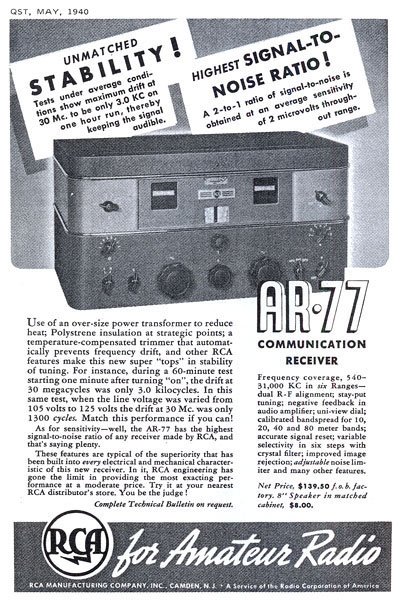 Это и знаменитый 14-ламповый супергетеродин AR-88, разработанный для коротковолновиков в 1941-м, но целиком поставлявшийся для нужд армии США, поскольку в декабре 1941 года Соединенные Штаты вступили во Вторую Мировую войну и любительская радиосвязь была запрещена.
