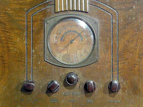 Ручки такой формы компания RCA Victor применяла в своих бытовых приемниках, начиная с 1935 года. Вот, например, как выглядела "мордочка" консоли С8-15 образца 1935 года: