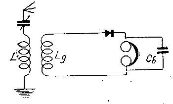 В виду того что в детекторных схемах мощность для приведения в действие телефона берется от энергии, принимаемой от передающей радиостанции, для детекторной катушки L, входящей также в детекторный контур (см. рис. 3), или путем изменения расстояния между катушками L и Lg (см. рис. 4) при индуктивной связи.
