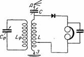 Фильтр CфLф, будучи настроен на мешающие колебания, представляет для них ничтожное сопротивление и поэтому их легко пропускает через себя в землю помимо приемника. Для колебаний других частот фильтр представляет уже значительное сопротивление.