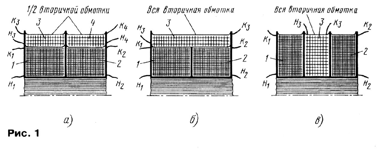 2. Секционирование вторичной обмотки позволяет подобрать наиболее оптимальное сопротивление нагрузки последовательно-параллельным соединением частей обмотки.