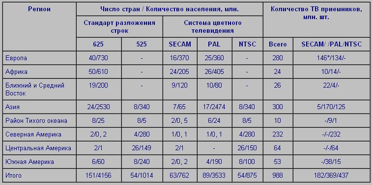 В табл. 1 приведены данные, характеризующие уровень развития телевизионного вещания по состоянию на начало 1994 г.