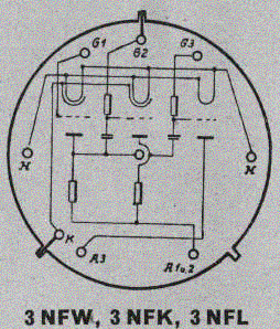 - 3NFW - 3 триода, 4 резистора, 2 конденсатора. Накал 4 В, 1А