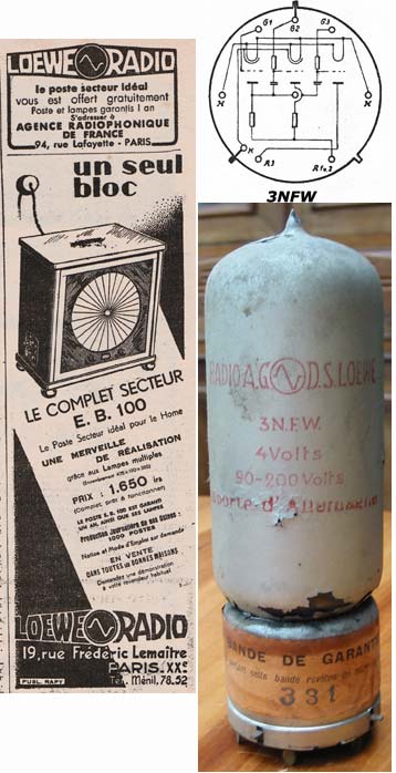 В Германии компанией "Loewe" разработана комбинированная электронная лампа "Loewe 3NF". Лампа представляла собой устройство, состоящее из 3-х триодов, 4-х резисторов и 2-х конденсаторов в одной колбе. Для создания радиоприемника к этим "интегральным схемам" добавлялся внешний колебательный контур (катушка и КПЕ), подключалось питание, громкоговоритель и антенна. Выпускались различные модификации интегрированных ламп: 3NFK, 3NFL, 3NFW – 3 триода, 4 резистора, 2 конденсатора; 2HMD – 2 тетрода, конденсатор; HF30 – 2 триода, 2 резистора, конденсатор; MO44 – 2 тетрода, конденсатор, WG33 – 2 триода, пентод, резистор, конденсатор; WG34 – тетрод, мощный пентод, резистор, конденсатор; WG35 – тетрод, мощный пентод, диод; WG36 – 2 пентода, триод, WG37 – 3 пентода, резистор, конденсатор.