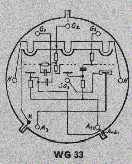 - WG33 – 2 триода, 1 тетрод, 6 резисторов, 3 конденсатора. Накал 50 В, 0,18 А