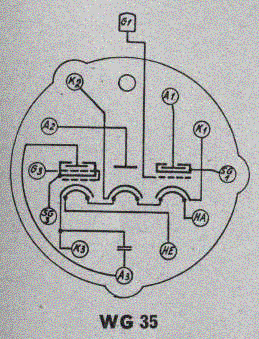 - WG35 – 1 тетрод, 1 мощный пентод, 1 диод, 1 конденсатор. Накал 63 В, 0,18 А.