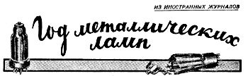 Но все же металлические лампы, выпущенные немного больше года назад в США, оказались столь необычными, что даже в этой обстановке “всеобщей усталости" от новинок их появление произвело сенсацию. О металлических лампах заговорили все, их качества и особенности горячо обсуждались на страницах специальной и даже общей печати.