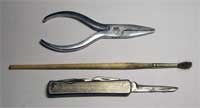 5. Инструменты: настольные тисочки, молоток, перочинный нож, пинцет, небольшие плоскогубцы, кисточка, паяльник.
