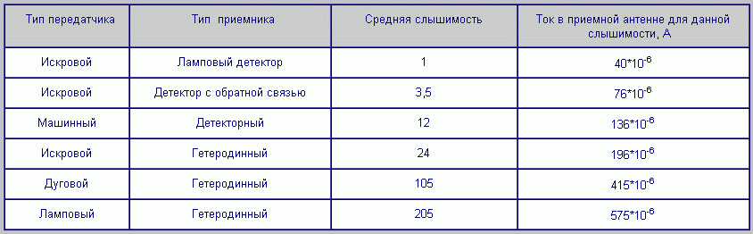 Анализ полученных результатов показывает, что наибольшая слышимость приема зависит от типа детекторного приемники и для этого типа приемников радиоприем идет с большей громкостью, если работает машинный передатчик. При использовании гетеродинных приемников слышимость передачи, когда работает ламповый передатчик в 2 раза больше по сравнению с дуговым и почти в 9 раз больше в сравнении с искровыми передатчиками. Преимущества ламповых передатчиков в сравнении с другими типами объясняются высокой стабильностью генерируемого сигнала ламповым триодом.