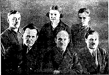Лучшие работники радиостанции. Слева направо первый ряд: 1) старший радиотехник Афанасьев; 2) начальник рации Кротов; 3) инж. Бергердт; второй ряд: 1) мачтовой Михелев; 2) мл. радиотехник Манина; 3) мл. радиотехник Харламов