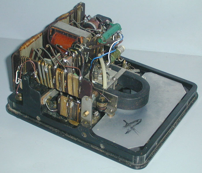 Как видно на фото, отдельного корпуса индикатор не имеет, его магнитная система и монтаж прибора объединены в одном корпусе. Среди навесных деталей к настоящему времени оригинальные практически не сохранились, за исключением купроксного выпрямителя (Westinghouse Metal Rectifier) и проволочных сопротивлений, намотанных на гетинаксовых планках. Учитывая боевое прошлое прибора, в этом нет ничего удивительного.