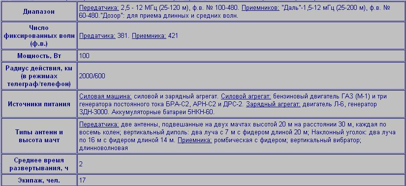 Таблица 1. Краткая тактико-техническая характеристика основных типов радиостанций и приемников РАТ