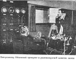 Рис. 5. Кинорежиссер Оболенский проверяет в радиоаппаратной качество записи