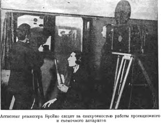 Рис. 5. Ассистент режиссера Бройко следит за синхронностью работы проекционного и съемочного аппаратов
