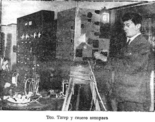 Работы Шорина производятся Трестом заводов слабого тока (а съемки Акц. обществом "Совкино"), работы Тагера и его группы ведутся Акц. обществом "Межрабпомфильм" совместно с ВЭИ и НКПТ. "Межрабпомфильмом" делаются засъемки для изучения акустических условии, производятся поиски различных методов звукового оформления и т.д. Ряд музыкальных записей, а также некоторые речи ораторов уже передавались в эфир (главным образом, при передачах журнала "Радио Всем" по радио), что получилось, по отзывам слушателей, удачно. Благодаря этому, вопрос о записи на пленку больших концертов и целых передач и рассылки их местным радиостанциям можно считать успешно разрешенным.
