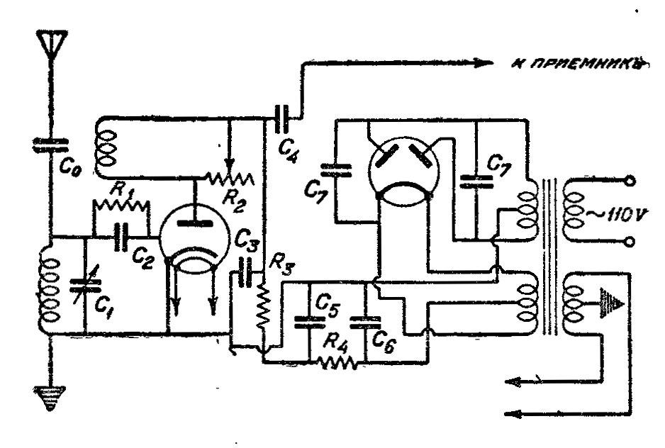 Наличие добавочных конденсаторов С7 в выпрямителе (между анодом я нитью кенотрона) необходимо, так как они способствуют полному устранению фона переменного тока.