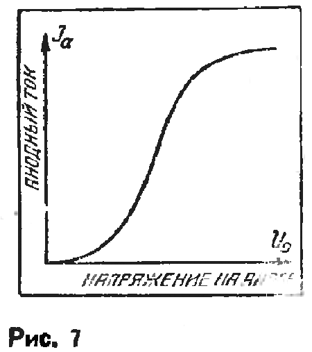 В начальный момент, когда напряжение на аноде лампы еще отсутствует, анодный ток будет практически равен нулю, так как электроны из "облачка" не будут притягиваться анодом и лишь очень незначительная часть электронов, обладающих наибольшими скоростями, будет "пробиваться" через отталкивающий их пространственный заряд.