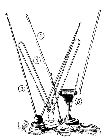 Рис. 3. Комнатные телевизионные антенны: а - "КТТА-I", б - "КРТА-54", в - АТКС-II-I, г - "АТКС-I"