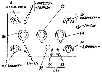 36 - гнезда для включения громкоговорителя или телефона в анодную цепь лампы 35.
