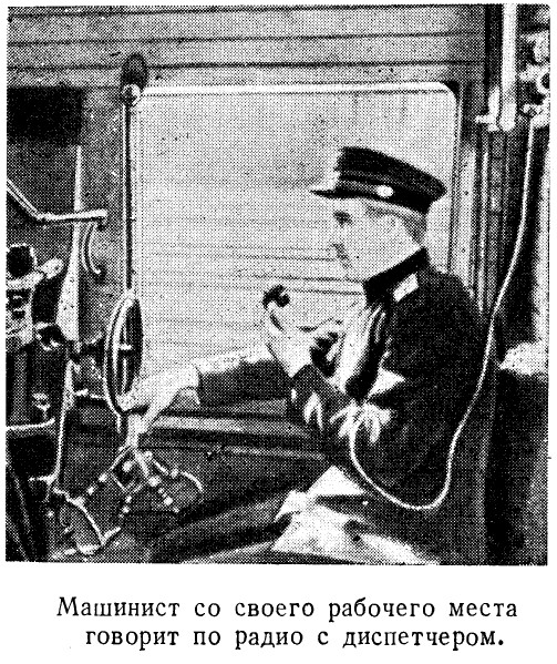 Устанавливаемый в кабине машиниста пульт управления размещается на боковой стенке позади машиниста с таким расчетом, чтобы передача из громкоговорителя, находящегося внутри пульта, была слышна машинисту. Машинист, взяв в руку микрофонную трубку, может вести разговор с диспетчером, не теряя наблюдения за путем через смотровое окно.