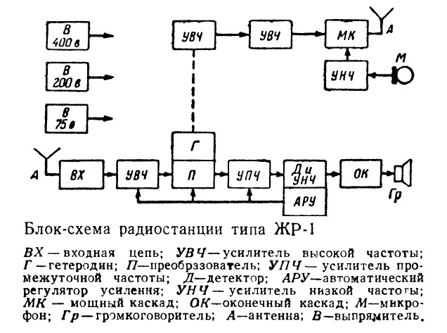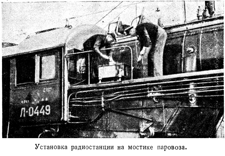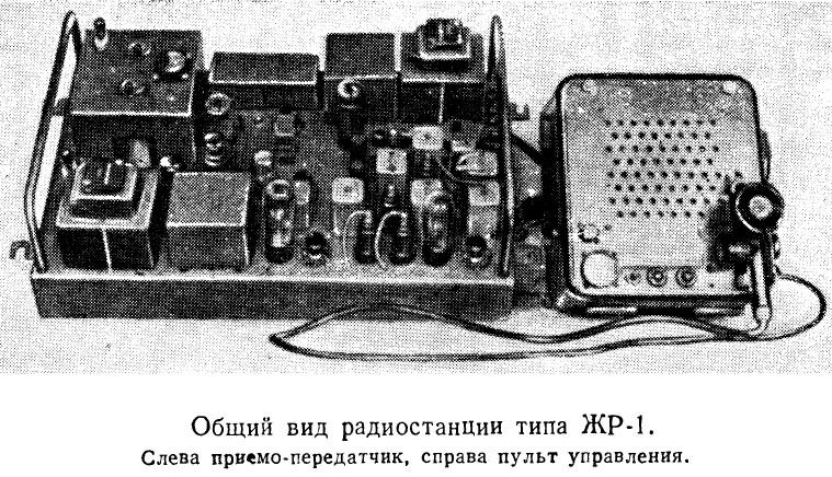 Для организации связи по радио между паровозом и стационарным пунктом в 1947 г. была разработана и выпускается нашей промышленностью приемо-передающая радиостанция типа ЖР-1 (железнодорожная радиостанция, первая разработка). Она состоит из трех-четырехкаскадного передатчика с модулятором, супергетеродинного пятилампового приемника и блока питания. Радиостанция работает на стометровом диапазоне на фиксированных частотах и обеспечивает надежную двустороннюю телефонную симплексную или дуплексную радиосвязь в радиусе до 6 км. Использование этой радиостанции обеспечивает беспоисковое вхождение в связь и бесподстроечное поддержание ее, что достигается применением кварцевой стабилизации в передатчике и в гетеродине приемника.