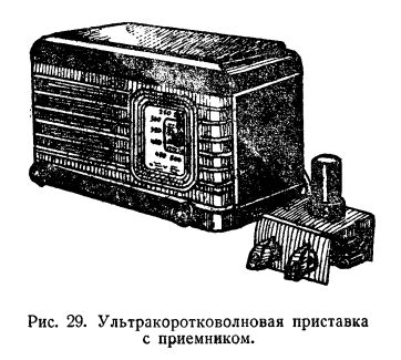 Постройка многолампового ультракоротковолнового приемника трудна для юных радиолюбителей. Лаборатория Центрального. радиоклуба ДОСААФ разработала специальную приставку, которая может быть подключена к любому сетевому приемнику (рис. 29)