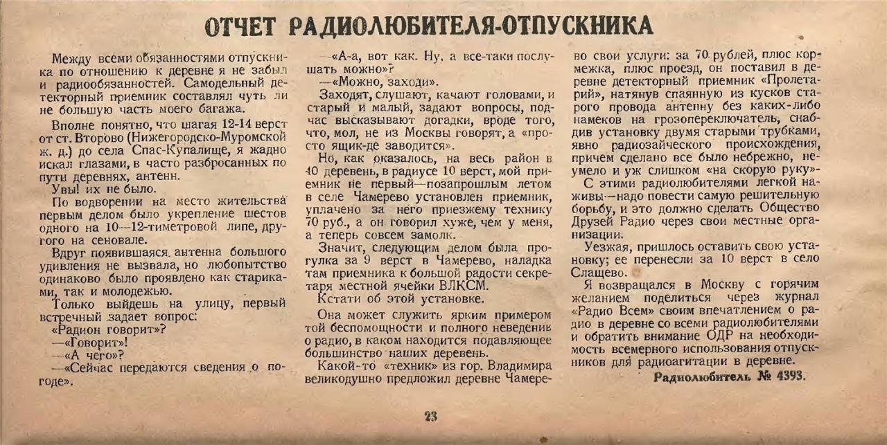 26 февраля 1926 г в "Известиях ЦИК СССР и ВЦИК" было опубликовано Постановление СНК СССР "О радиостанциях частного пользования", что легализовало радиослушателей (в части разрешения на установку индивидуальных радиоприемников).