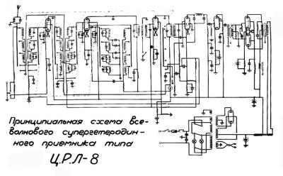 Радиоприёмник ''ЦРЛ-8'' разработан в конце 1934 года (разработка Центральной Радио-Лаборатории Главэспрома, модель № 8 ), представляет собой радиовещательный приёмник супергетеродинного типа с динамическим громкоговорителем и выпрямителем. Все смонтировано в общем футляре. Приёмник предназначен для питания от переменного тока напряжением 110, 120 или 220 в.