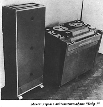По решению ЦК КПСС работы по видеозаписи начались параллельно в Москве (ВНАИЗ) и в Ленинграде (Ленкинап и ВНИИТ). Хотя в основу московского и ленинградского аппаратов был заложен один и тот же способ поперечно-строчной записи вращающимися головками сигнала с частотной модуляцией низкой несущей, но пути разработчиков разошлись. Создатели "Кадра", так был назван московский видеомагнитофон, руководимые к.т.н. В.И. Пархоменко (А. Гончаров, В. Лазарев, А. Спирин, И. Орехов, А. Ланген, П. Зон, Л. Маркович, Л. Лишин и др.) поставили перед собой задачу обеспечить взаимозаменяемость собственной видеофонограммы с зарубежными. Ленинградцы, руководимые М.Г. Шульманом, применили в своем видеомагнитофоне КМЗИ ленту шириной 70 мм, что явилось грубой ошибкой и полностью исключило возможность воспроизведения зарубежных программ.