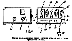 65 - блокировочный контакт, выключающий питание приемника при снятии задней стенки ящика.