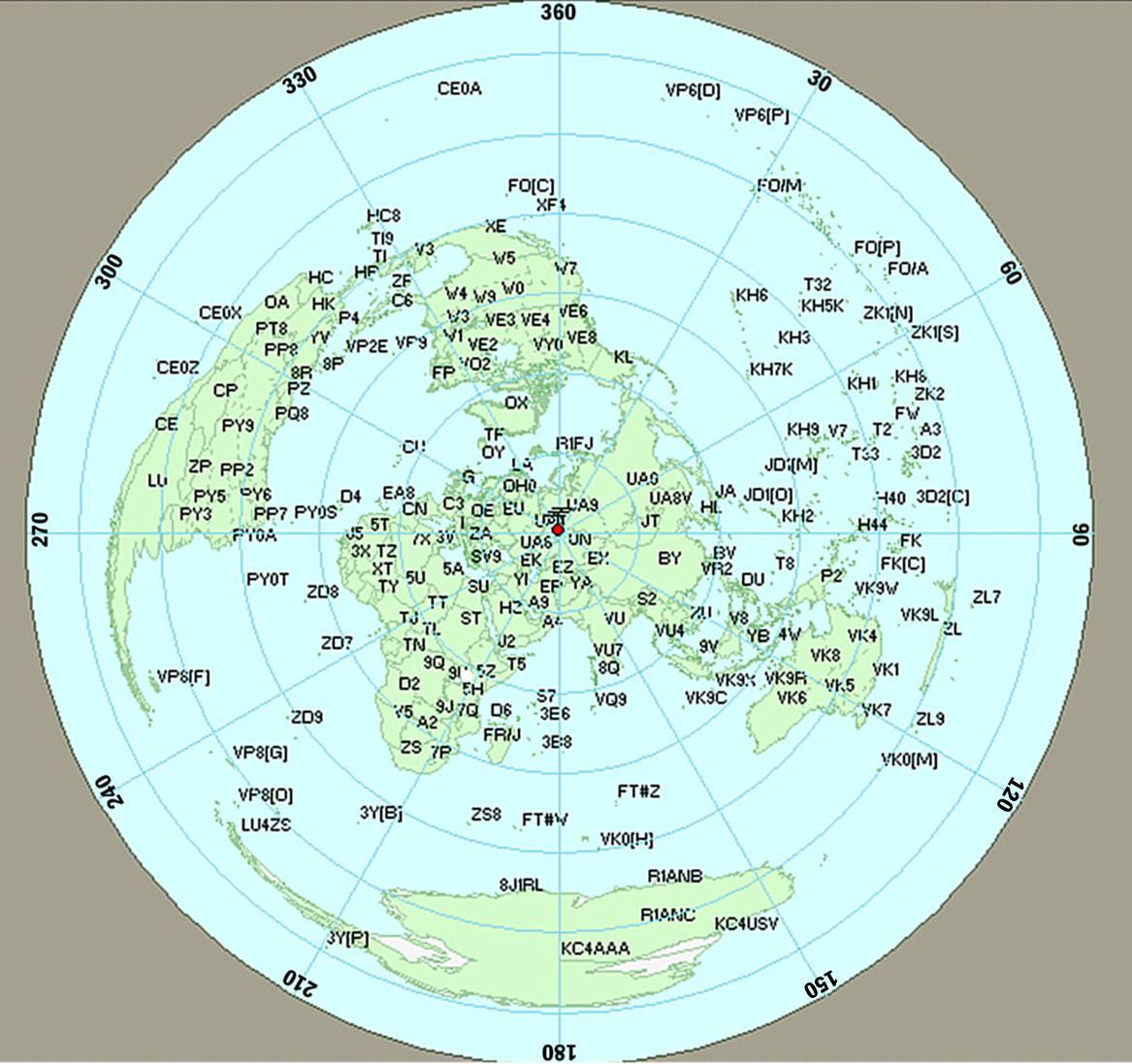 Вот здесь можно задать значения и получить в PDF азимутальную карту для любого региона: https://ns6t.net/azimuth/azimuth.html
