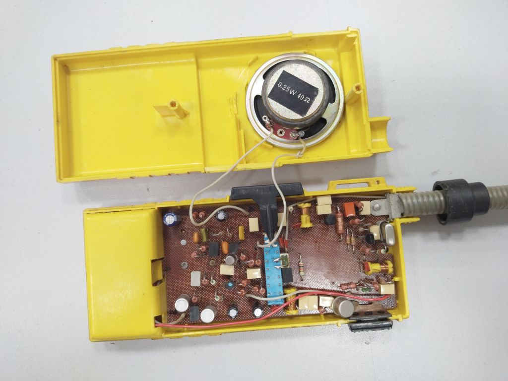 К сожалению не нашел схему на эту игрушку, если у кого есть - пришлите. Ну и пока не решил что с ней делать, как экспонат она мне не интересна. Есть мысль сделать из нее учебное пособие (обе станции рабочие), как можно сделать простую радиостанцию используя минимум деталей, и как пример как не надо делать электронное устройство, даже если это всего-лишь игрушка. Но если кому нужно в коллекцию - обращайтесь,