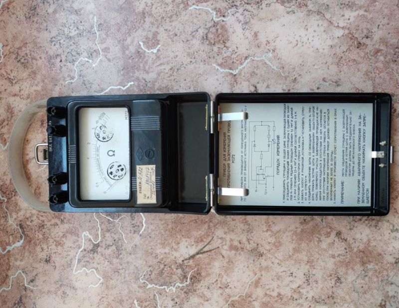 Омметр М372 предназначен для измерения сопротивления заземляющей проводки, установления факта ее обрыва, а также для обнаружения при кратковременном воздействии переменного напряжения на оборудовании. Измерение производится с помощью специального щупа и струбцины.