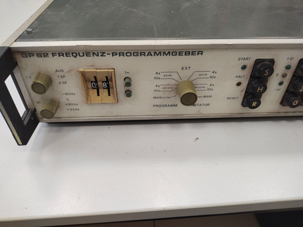 Предназначен для генерации свободно определяемых или (в виде фиксированных программ) заранее определенных частотных спектров. Программирование / управление частично осуществляется с помощью числовых входных элементов. Интерфейсы для вспомогательных устройств GF62 и MV62 на задней панели.