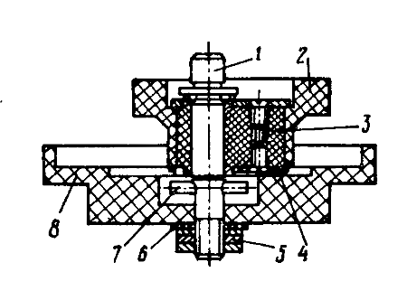 1 - ось; 2 - фланец; 3 - эксцентрик; 4 - поводок; 5 - гайка; 6 - шайба; 7 - штифт; 8 - тормозной шкив