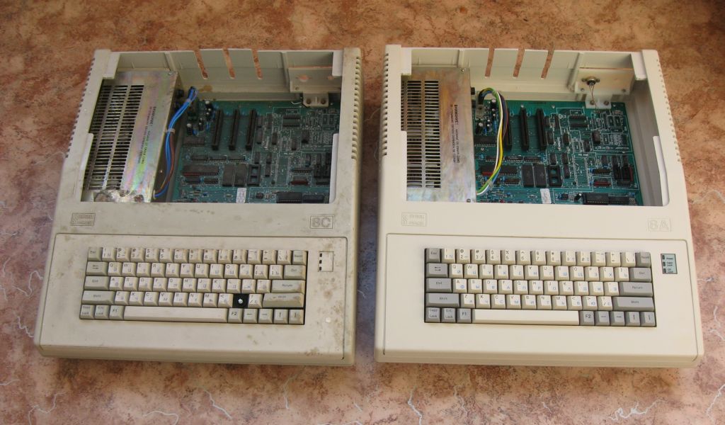 Ну и для сравнения: слева то каким он был до реставрации, справа - после (изначально было два компьютера в примерно одинаковом состоянии, один уже отреставрирован, второй ожидает своей очереди).