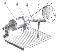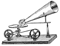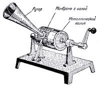 Идея записи звука на вращающийся барабан возникла еще двадцатью годами раньше, когда был построен прибор "фотоавтограф". Прибор содержал рупор с мембраной, к которой была прикреплена игла, и вращающийся барабан, покрытый закопченной бумагой. Звуковые колебания попадали в рупор, заставляя колебаться мембрану, а связанная с ней игла прочерчивала на бумаге тонкую линию - "след" звукового колебания. Однако такой прибор позволял только записывать звуки, а задача их воспроизведения не была решена.