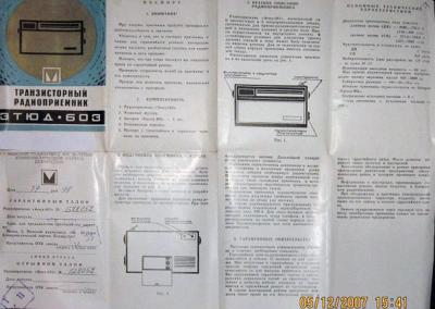 Транзисторный радиоприёмник "Этюд-603" выпускался Минским радиозаводом с 1971 года.