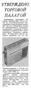 Переносные электрофоны третьего класса ''Рогнеда-302'' и ''Лидер-302'' рассчитаны на полуавтоматическое проигрывание грампластинок, диаметром 175 мм в стационарных условиях или в движении. Электрофоны состоят из электропро- игрывателя и усилителя низкой частоты на транзисторах. Усилитель имеет чувствительность - 250 мВ, номинальную выходную мощность 0,5 Вт. В электрофонах применён громкоговоритель типа 1ГД-28. Полоса воспроизводимых звуковых частот - 150...7000 Гц. Двигатель типа ДРВ-0,1 применённый в старой моде ли электрофона ''Рогнеда'' заменен новым ДЛФ-1. Скорость вращения у диска 33 об/мин. Питание любого из электрофонов осуществляется от шести элементов 373, потребляемая мощность не превышает 2 Вт. Размеры любого электрофона 316х288х104 мм, масса - 2,7 кг. Конструкция и схема моделей одинакова.