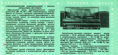 - Рекламная информация о комплексе "Романтика-109-стерео" в журнале Радио № 2 за 1977 год.