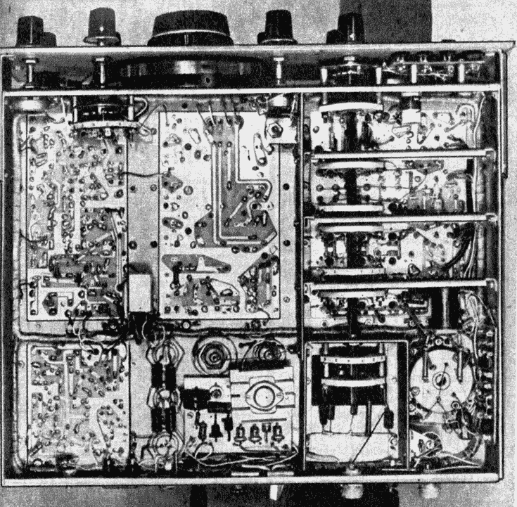 Перегородки, на которых расположены платы переключателя диапазонов, желательно соединить (примерно посередине) короткими широкими перемычками (например, полосками тонкой латуни) с общим проводником печатной платы. Это улучшит развязку между каскадами и уменьшит возможность самовозбуждения.