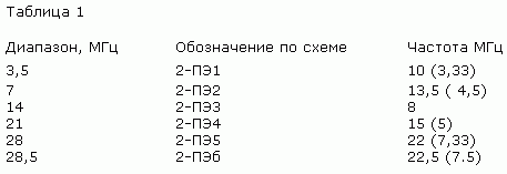 Частоты кварцевых резонаторов приведены в табл. I