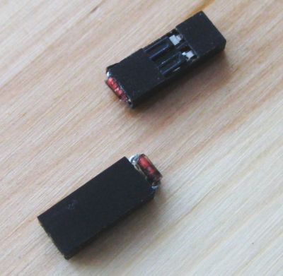 Схема очень проста, содержит всего две микросхемы: DD1 74HC00 (тактовый и задающий генератор с буферным каскадом) и DD2 CD4017 (формирователь кода). Автором схемы является Бирюков Н.В., я лишь развел под нее плату и добавил в схему еще один транзистор, на коллектор которого может быть подключено реле или который может быть подключен для управления отдельным передатчиком. Особенностью конструктивного решения является то, что диоды формирователя кода выполнены в виде джамперов, что позволяет быстро изменить код формируемого схемой знака, а установка кварца на разъем позволяет быстро заменить его, для того чтобы изменить частоту задающего генератора или вообще отключить его.
